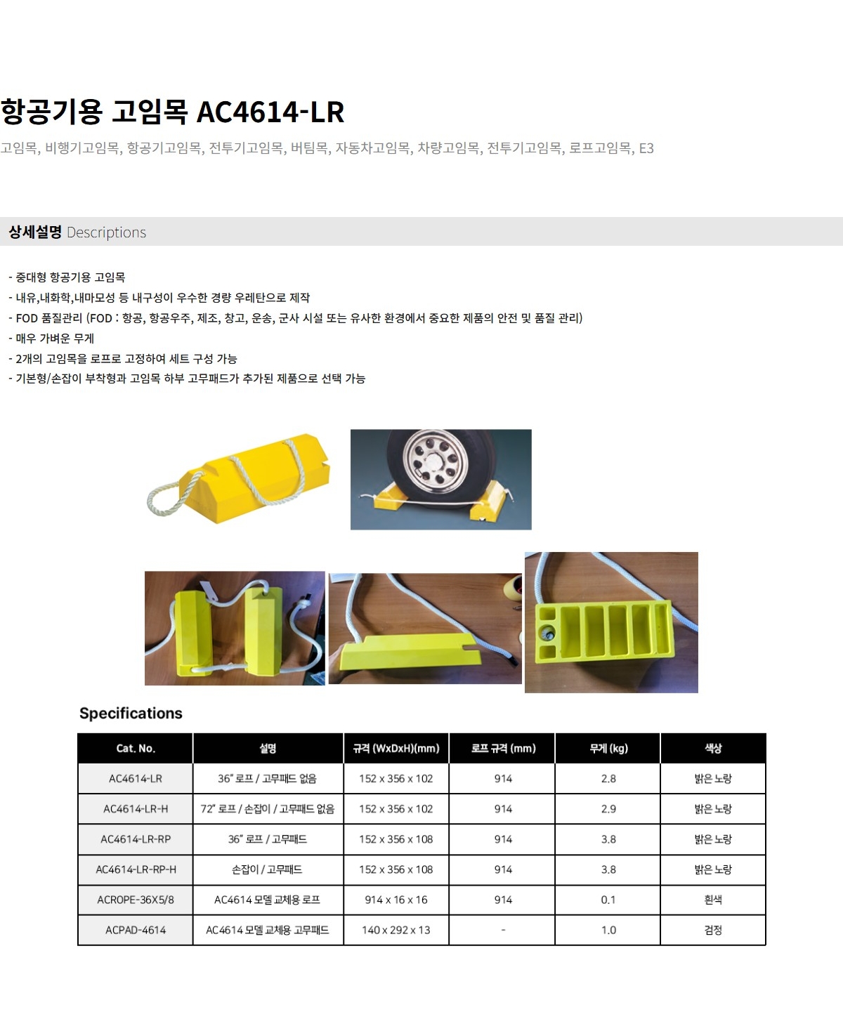 • Checkers AC4614-LR-H / 중대형 항공기용 고정,손잡이로프 포함 고임목 (초경량우레탄,고무패드 미포함,노랑),356x152x102mm,2.9kg[1EA]